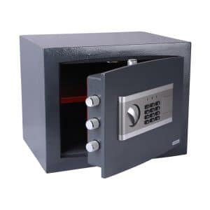 ברצפת הכספת שני חורי עיגון לקיבוע הכספת ובגב הכספת חור ייעודי המאפשר חיבור הכספת למערכת אזעקה.